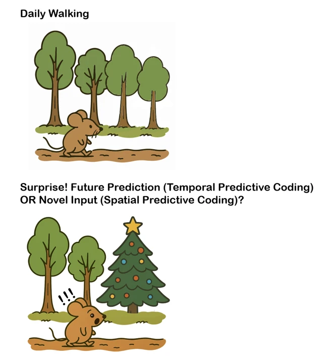 Does predictive coding work in SPACE or in TIME? Most neuroscientists assume TIME, i.e. neurons predict their future sensory inputs. We show that in visual cortex predictive coding actually works across SPACE, just like the original Rao+Ballard theory predicted.